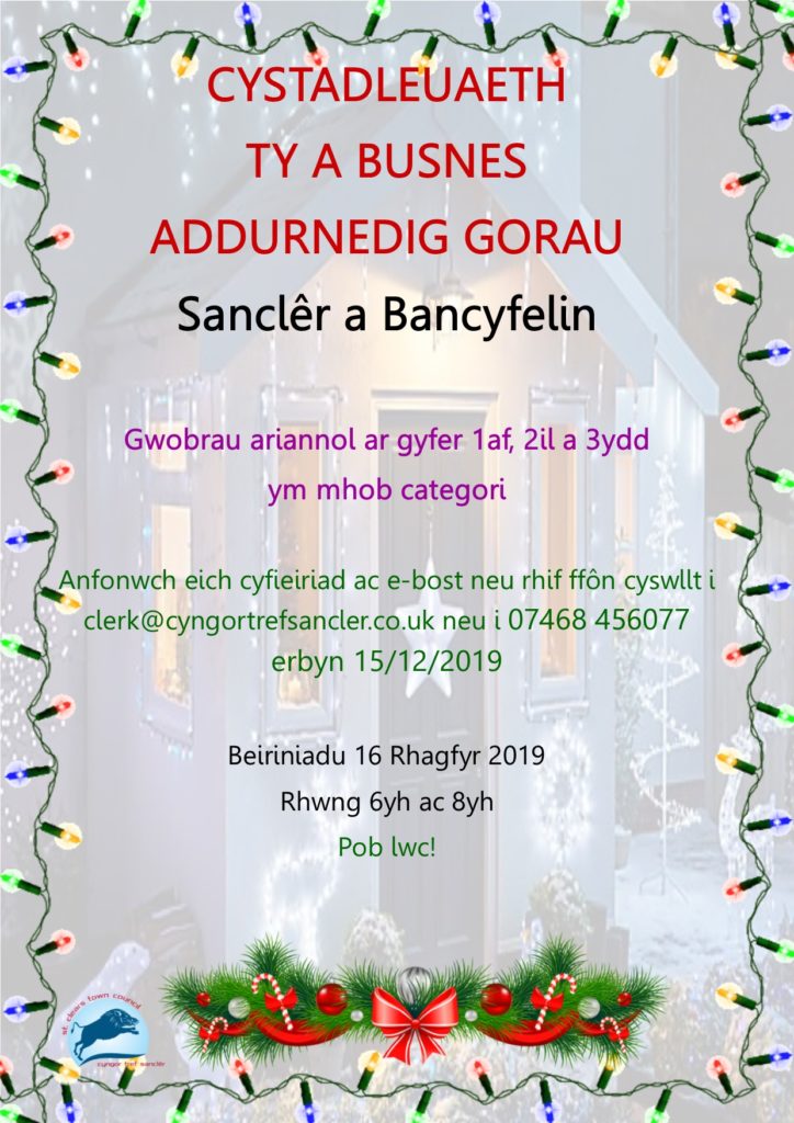 Cystadleuaeth Addurniadau Nadolig Gorau