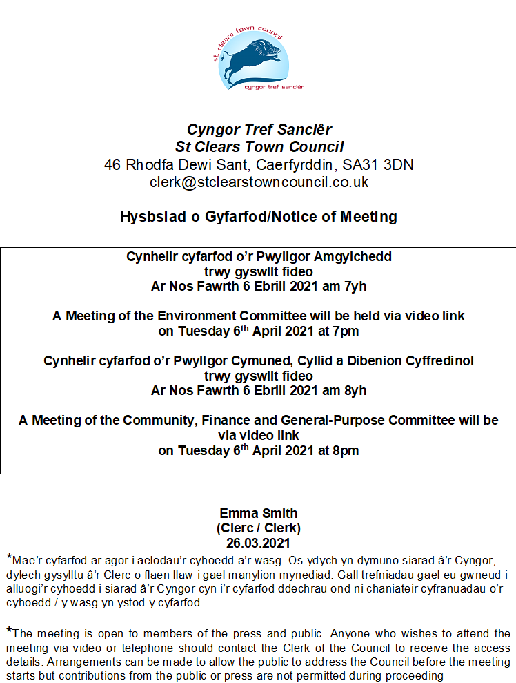 Cist Digwyddiadau Cymunedol Cyngor Tref Sanclêr