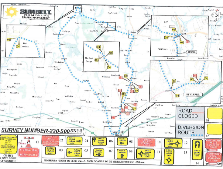 YNGHYLCH: CAU FFORDD DROS DRO: CROESFAN REILFFORDD SANCLÊR, Y B4299 HEOL YR ORSAF, SANCLÊR.