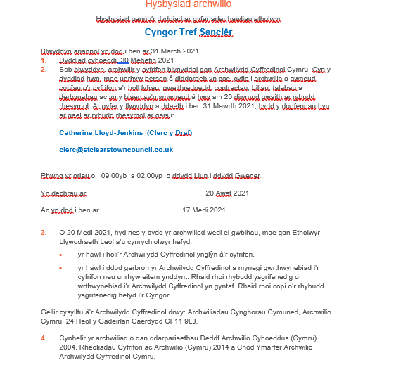Cist Digwyddiadau Cymunedol Cyngor Tref Sanclêr