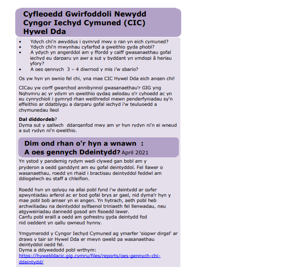 Diweddariad Cyngor Iechyd Cymuned Hywel Dda