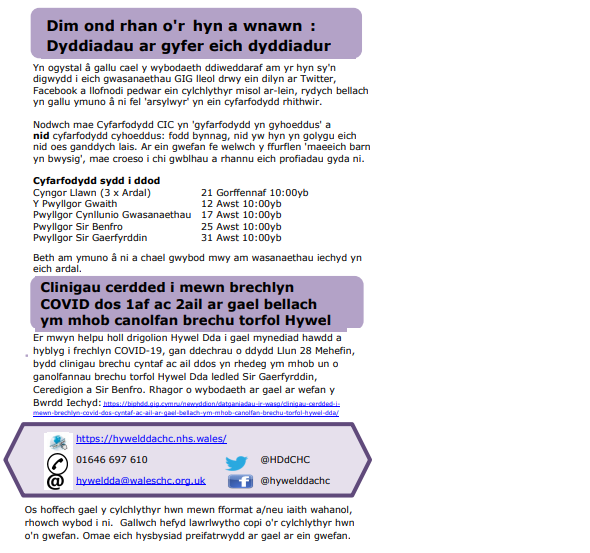 Cylchlythyr https://hywelddachc.nhs.wales/what-we-have-to-say/briefings-newsletters/