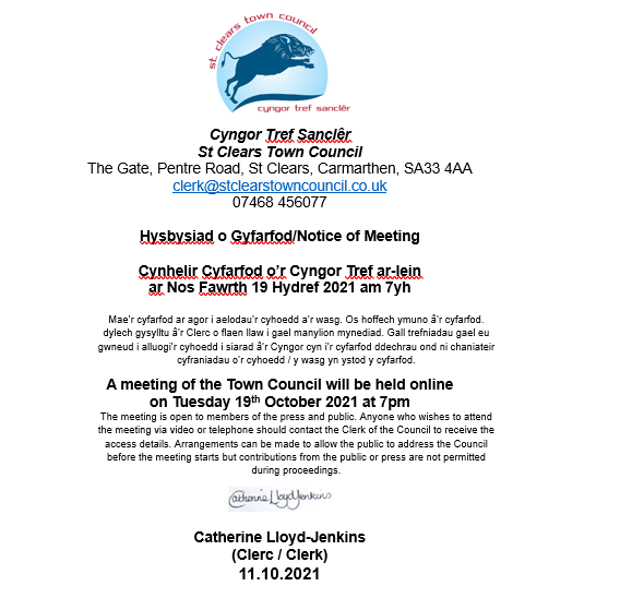 Copyright - St Clears Town Council - All Rights Reserved - Website designed by w3designs