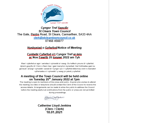 Copyright - St Clears Town Council - All Rights Reserved - Website designed by w3designs