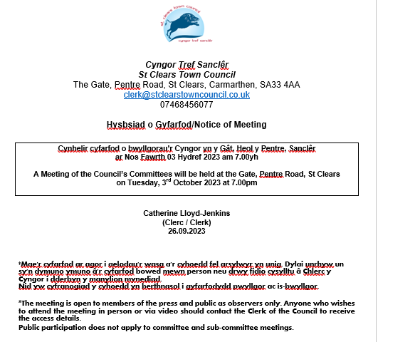 Copyright - St Clears Town Council - All Rights Reserved -