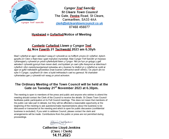 Copyright - St Clears Town Council - All Rights Reserved -