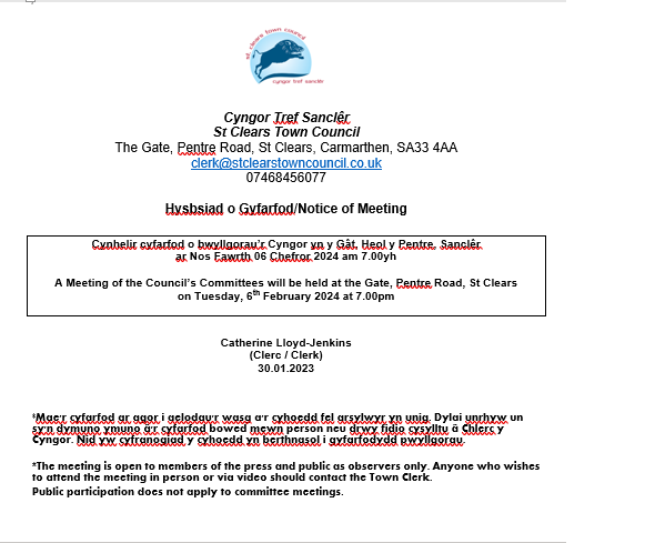 Copyright - St Clears Town Council - All Rights Reserved - Website designed by w3designs