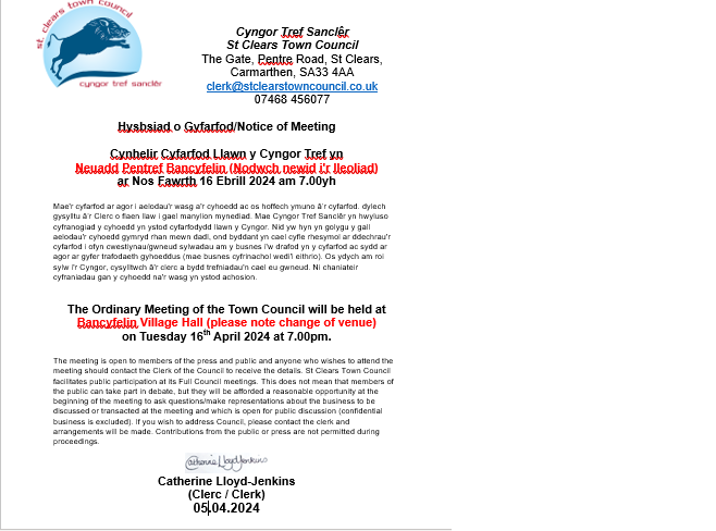 Copyright - St Clears Town Council - All Rights Reserved -